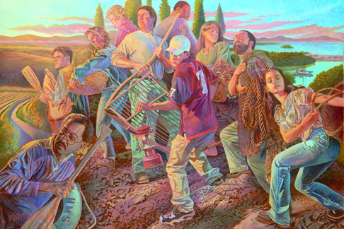 "While it is Yet Day" is a depiction of the two Biblical themes of harvesting and fishing, as they relate to Christian Missions. Perimeter Church encourages its members to use the varied gifts with which God has uniquely blessed each believer. This art was created specifically for the Global Outreach program of Perimeter Church for the production of a two 5' by 10' murals and subsequent limited edition prints. All proceeds from print sales are used to support the overseas ministries of Perimeter Church. |